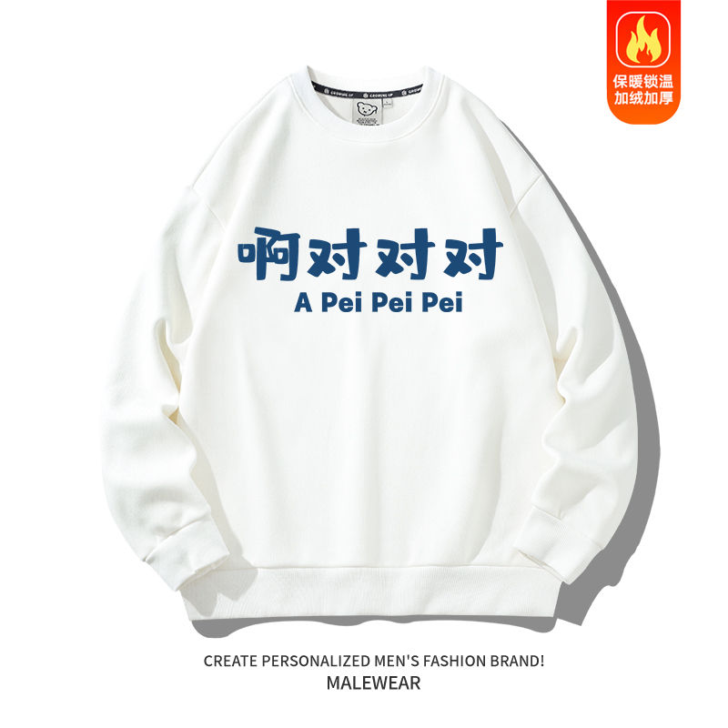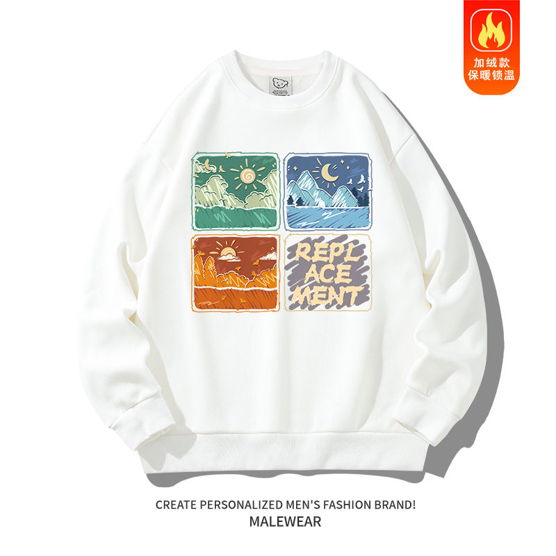 New round neck sweatshirt, heavyweight autumn/winter style, fleece-lined jacket